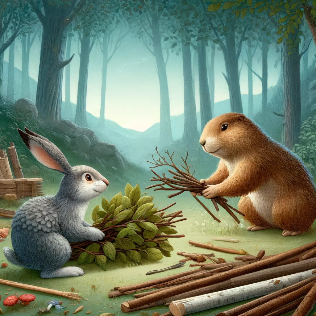 À partir de ce prompt, ChatGPT a créé « Les Aventures de Léo le Lièvre et Mia la Marmotte ». L’histoire raconte comment Léo, un lièvre curieux, et Mia, une marmotte prudente, doivent apprendre à travailler ensemble pour surmonter un défi dans une forêt magique. En coopérant pour construire un abri avant l’arrivée d’une tempête, ils découvrent les forces et les faiblesses de chacun et apprennent la valeur de l’amitié et de la coopération.